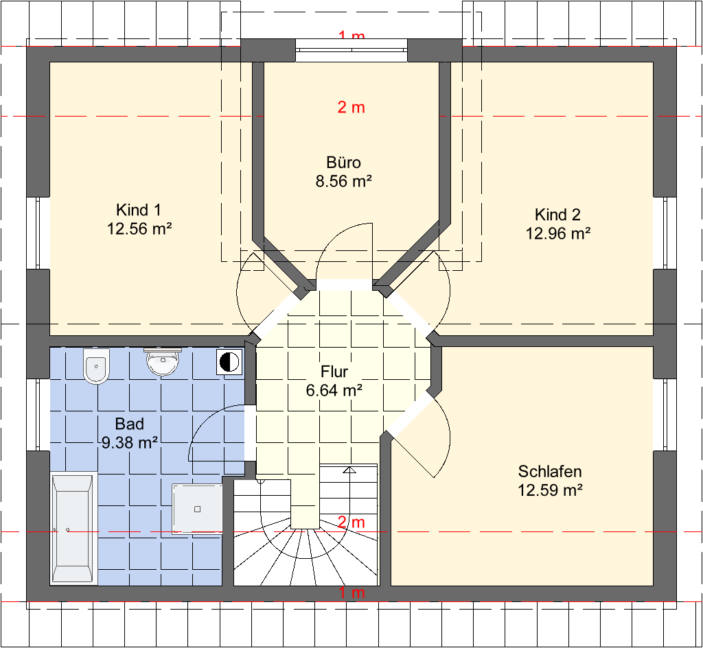 Grundfläche: 10,50 x 9,00 m